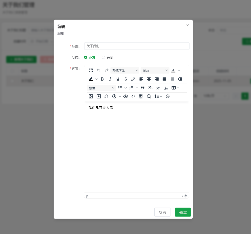 通过字典和路由的配置,灵活的配置内容管理。再做客户开发中,我们经常会遇到一堆内容管理:通知、公告、关于我们、隐私协议、用户协议、看板等等。这些其实都是一个富文本输入为主。或多或少一个字段。为此我们单独去给他弄一个代码,实属复杂。