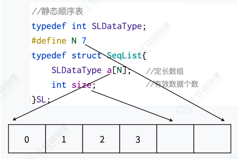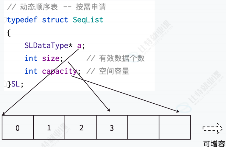 {SLDataType* arr;int size;//有效数据的个数int capacity;//空间大小
