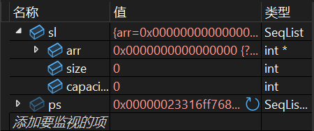 可以看到经由调试之后,发现我们的这个sl顺序表成功完成了初始化: