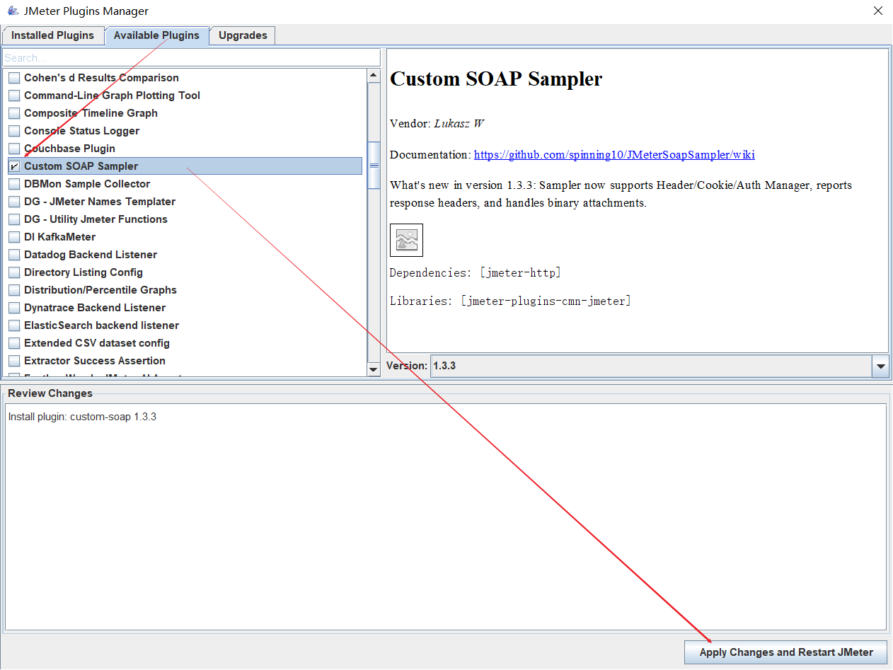 Available Plugins:所有可以安装的插件列表,点击想安装的插件旁边的 Install 按钮