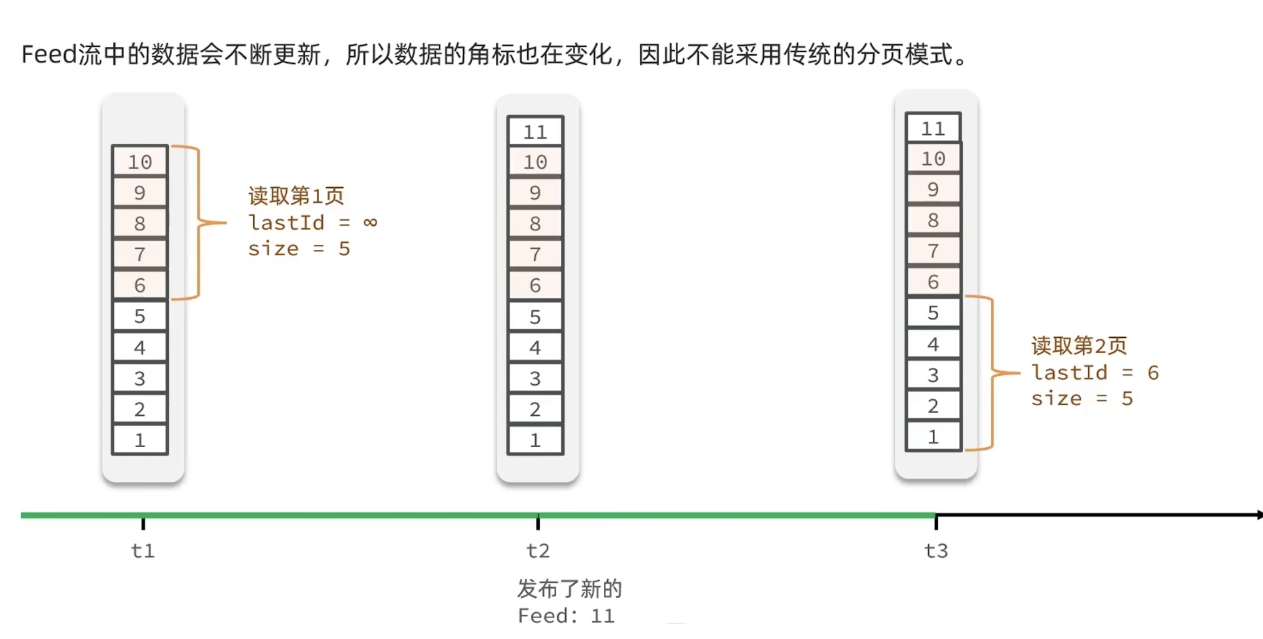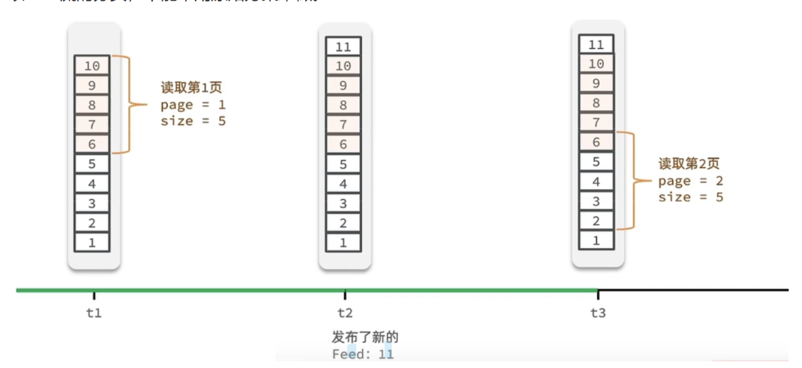 实现原理:使用一个“游标”(Cursor)来标记当前位置,然后查询这个游标之后或之前的 N 条数据。