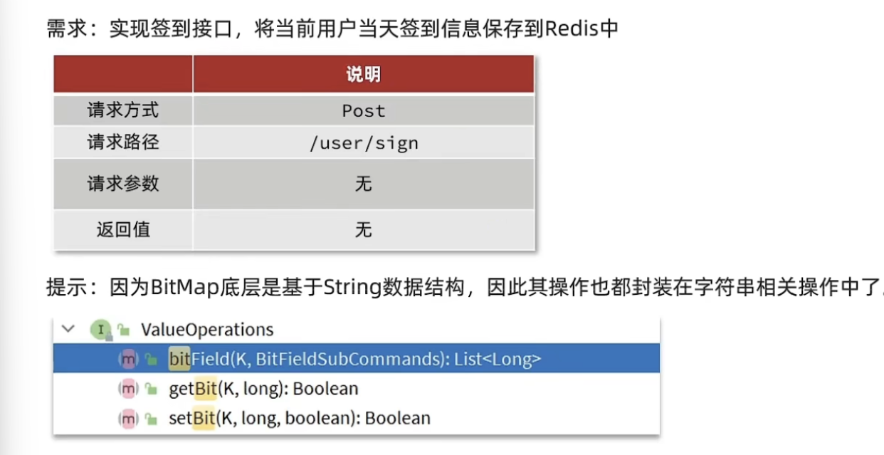 虽然接口未传递日期参数,但后端代码可通过系统时间自动获取当前日期,据此确定签到的具体日期,并更新 Redis 中相应的位置。这样无需前端传递日期参数,直接在后端处理即可。