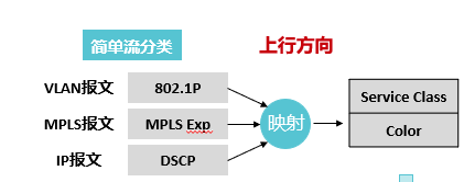 实现差分服务的第一步将流量进行分类与标记,只有给流量打上标记进行分类才能更好的实现流量优化,便于之后实现区分服务,流分类可根据不同报文的特性实现方式不同的流分类处理,比如Vlan报文可以基于802.1p区分流量,MPLS报文可基于MPLS EXP字段,IP报文可基于DSCP字段实现