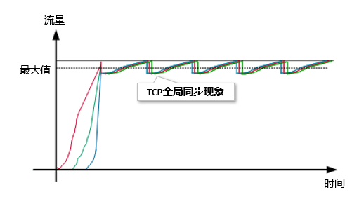 发生拥塞时,TCP的慢启动机制导致TCP流量集体下降,又在一定时间内回升,之后又因检测到拥塞集体下降,进而导致带宽利用率下降