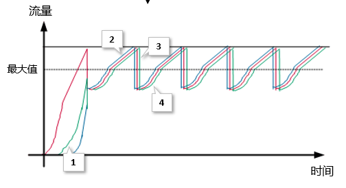 即传统型网络的作法,当队列长度到达最大值,后来的流量将被丢弃