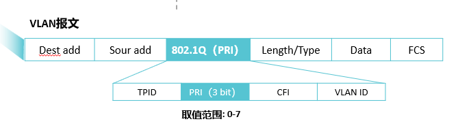 802.1p即vlan标签内的PRI字段,改字段取值范围0-7,通常用不同数值标识视频语音文本等不同流量