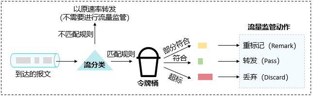 将流量的最大值固定,当流量超限时,根据配置选择丢弃其他流量或者降低优先级转发
