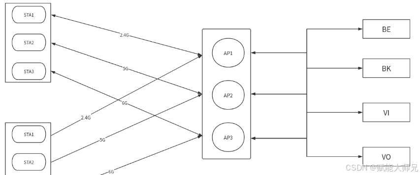 以国内的角度来看,6G是遥遥无期的,所以整个wifi7的价值在不开放6G频段的国家的价值大大降低,连带着wifi6E也是如此。数据优先级可以和不同的链路进行绑定,下边介绍下图例中的数据优先级: