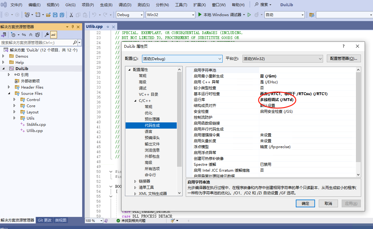 因为CEF是用VS2022编译的,所以Duilb也需要这个版本的编译器编译(DLL需要编译成MTD)