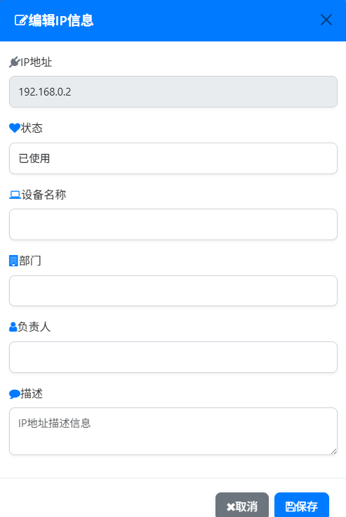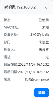 ▼管理IP地址信息,支持查看、编辑、搜索IP地址。