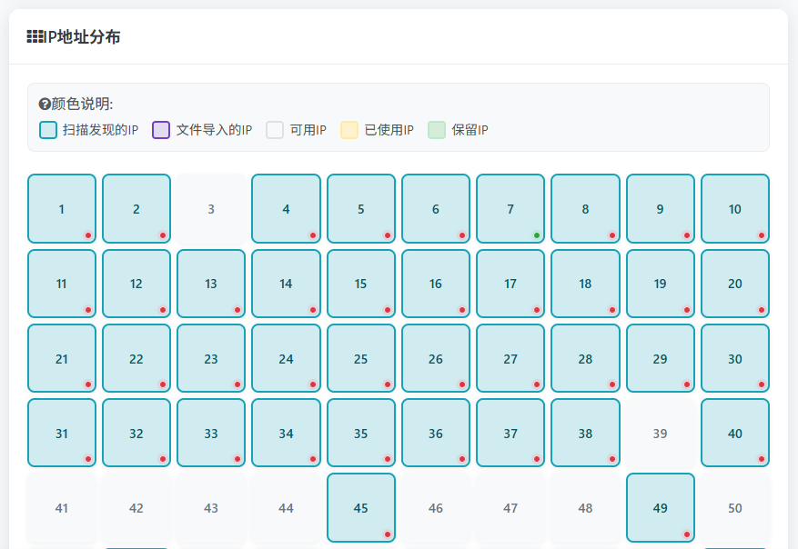 - 提供直观的IP地址可视化界面,以网格形式展示IP使用情况