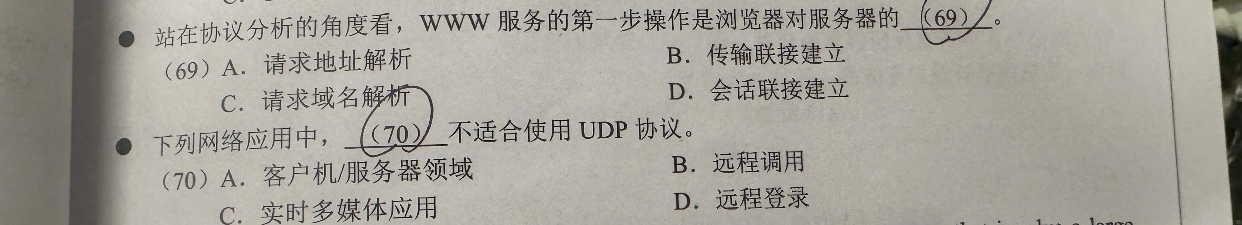 5.SMTP传输邮件,FTP传输文件,HTTP传输网页,因此都需要通过TCP来做到可靠传输。DNS为域名解析系统,UDP服务效率更高,开销小。