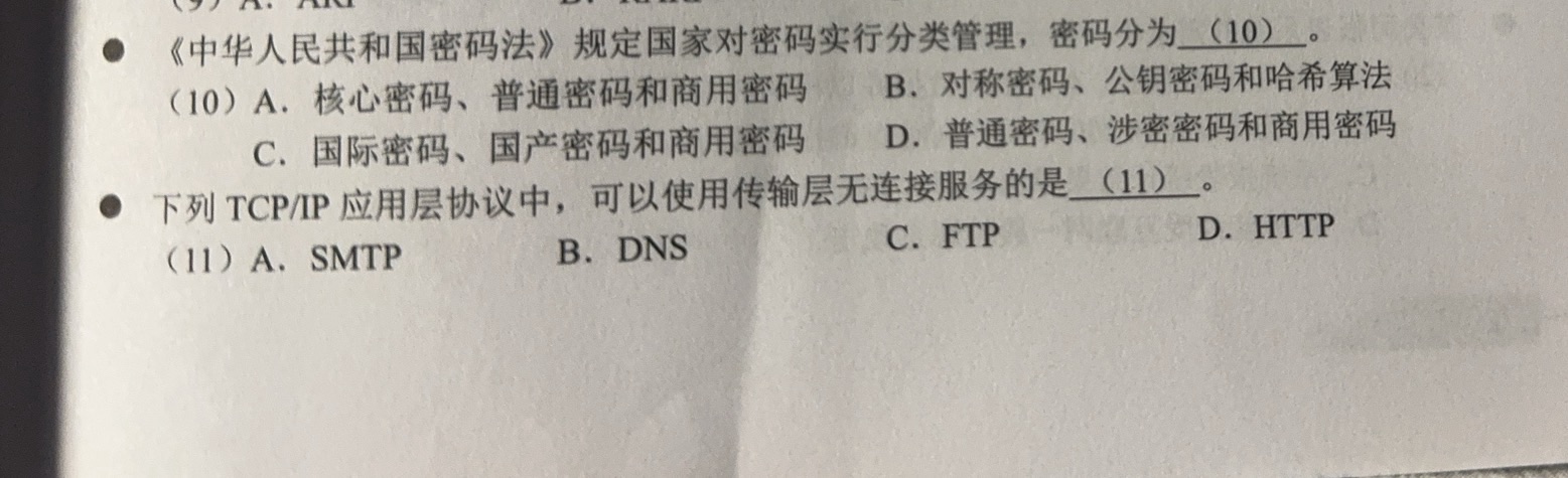 4.分为核心密码、普通密码和商用密码。核心密码、普通密码用于保护国家秘密信息,前者最高级为绝密级,后者最高级为机密级。商用密码用于给公司企业保护网络与信息安全。绝密30年保护,机密20年保护,秘密10年保护。