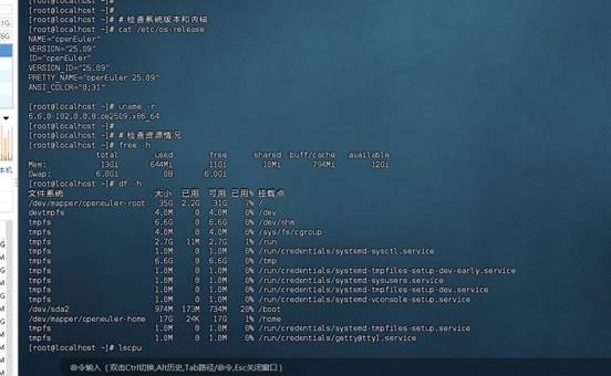 Bash # 检查系统版本和内核 cat /etc/os-release uname -r # 检查资源情况 free -h df -h lscpu