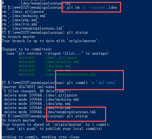 2. 打开git命令行 git rm -rm --cached .idea(这个是你的目录或文件)先删除掉