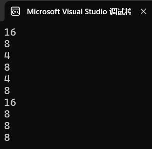 {int a[] = { 1,2,3,4 };printf("%d\n", sizeof(a));//16--sizeof(数组名)的场景printf("%d\n", sizeof(a + 0));//4/8--a是首元素的地址-类型是int*,a+0还是首元素的地址printf("%d\n", sizeof(*a));//4--a是数组首元素的地址,*a是首元素//*a==a[0]==*(a+0)printf("%d\n", sizeof(a + 1));//4/8--a是首元素的地址,类型是int*,a+1跳过1个整型,a+1是第二个元素的地址printf("%d\n", sizeof(a[1]));//4--a[1]是第二个元素,类型是intprintf("%d\n", sizeof(&a));//4/8--&a是数组的地址,类型是int*printf("%d\n", sizeof(*&a));//16--*&互相抵消,sizeof(*&a)==sizeof(a)printf("%d\n", sizeof(&a + 1));//4/8--&a是数组的地址,&a+1跳过一个数组printf("%d\n", sizeof(&a[0]));//4/8--首元素的地址printf("%d\n", sizeof(&a[0] + 1));//4/8--&a[0]首元素的地址,+1跳过一个整型,是第二个元素的地址