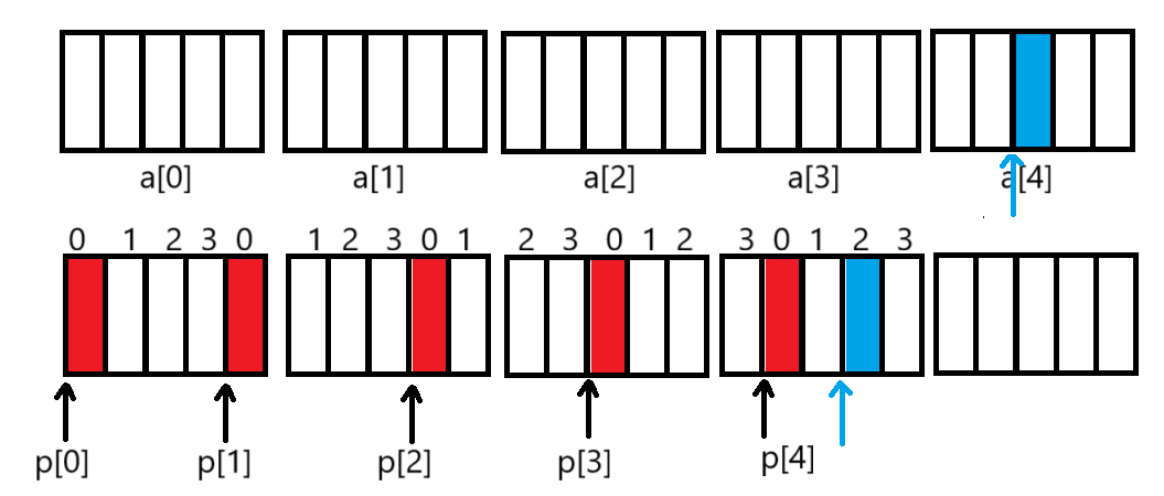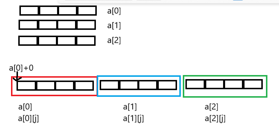 a[0]是第一行的数组名,数组名表示的首元素的地址,其实就是&a[0][0]的地址,p[0]==*(p+0),就是首元素