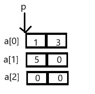 {int a[3][2] = { (0, 1), (2, 3), (4, 5) };int *p;p = a[0];printf( "%d", p[0]);return 0;