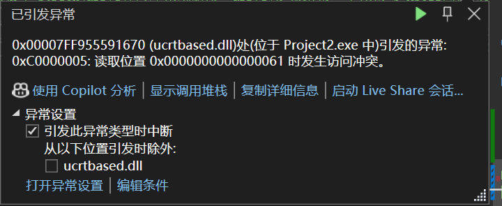 {char arr[] = "abcdef";printf("%d\n", strlen(arr));//6--arr是数组首元素的地址,直到遇到'\0'停止printf("%d\n", strlen(arr + 0));//6--arr+0是数组首元素的地址,直到遇到'\0'停止//printf("%zd\n", strlen(*arr));//系统崩溃--arr是数组首元素的地址,*arr是数组首元素-a-ASCII值为97//printf("%zd\n", strlen(arr[1]));//系统崩溃--arr[1]是数组第二个元素-b-ASCII码值为98printf("%d\n", strlen(&arr));//6--&arr是数组的地址,也是从第一个元素向后找'\0'printf("%d\n", strlen(&arr + 1));//随机值--&arr是数组的地址,&arr跳过了整个数组,造成了越界访问printf("%d\n", strlen(&arr[0] + 1));//5--&arr[0]+1是数组第二元素的地址,直到遇到'\0'停止return 0;