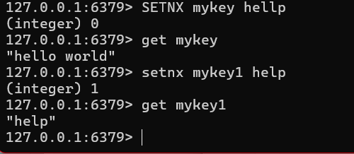 setnx key value判断key的值是否存在,如果为null 则设置数据