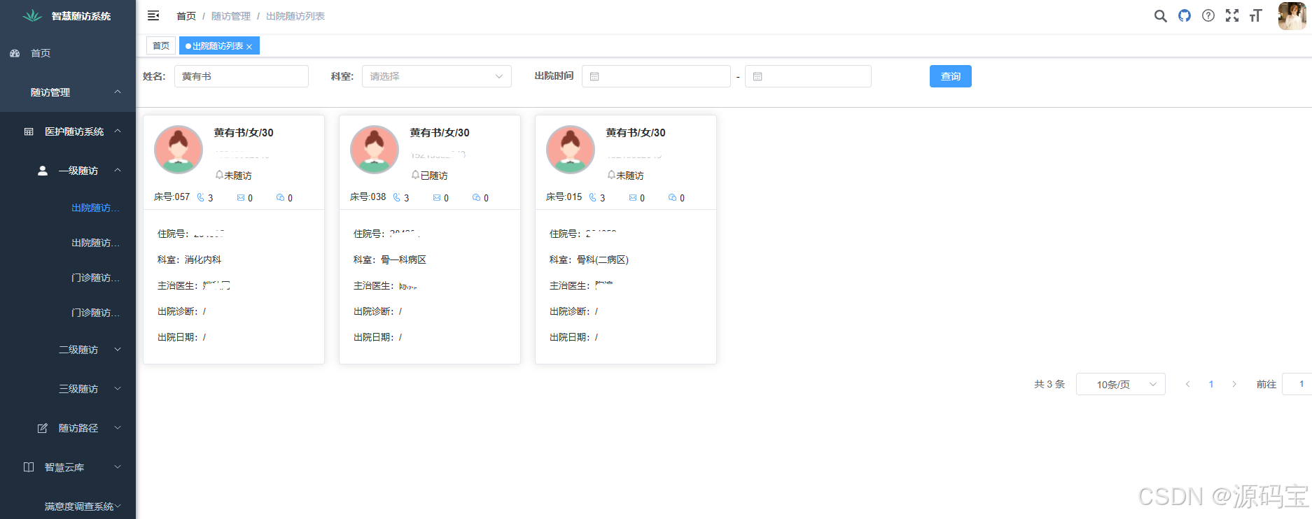 项目级医院随访系统源码,患者随访管理系统源码,三级随访系统源码,java版随访系统全套源码。