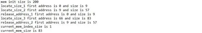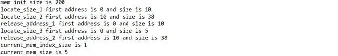 命令locate请求分配内存块成功,则返回内存块的首地址,分配失败,则返回error,命令release请求释放内存块成功,则返回已释放内存块的大小,释放失败,则返回error。