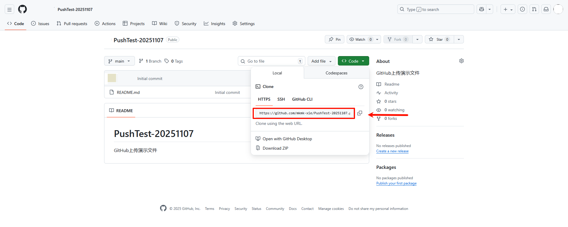 3.代码仓库创建好了,我们需要拿到这个链接,这个通常是我们需要的“仓库地址”。