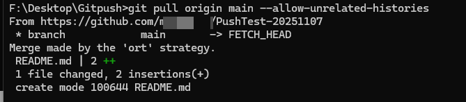 说明:main 是 GitHub 默认分支名,若你的分支名是 master,替换为 git pull origin master --allow-unrelated-histories;