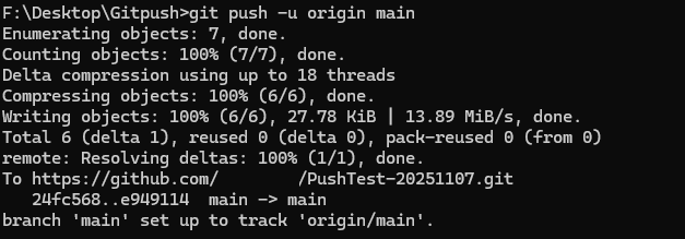 git push -u origin main # 分支名替换为你的实际分支(如 master)
