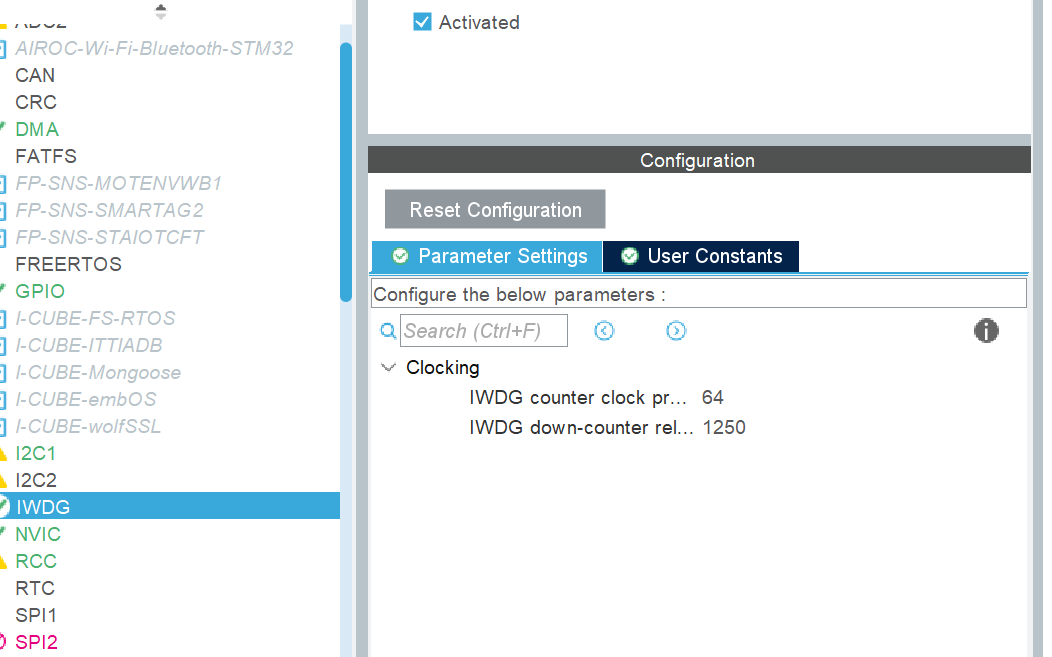 在芯片内部有两个看门狗系统一个是独立看门狗一个是窗口看门狗,看门狗的作用就是监视程序的执行若程序执行出现错误没有及时喂狗,就会触发中断给系统复位。窗口看门狗相比于独立看门狗来说会有一个窗口期,只有在该时期喂狗才会有效,其他时期喂狗或者不喂狗都会造成系统复位,所以窗口看门狗的监视能力更强。下面我们来看CubeMX配置和程序(带有详细注释):