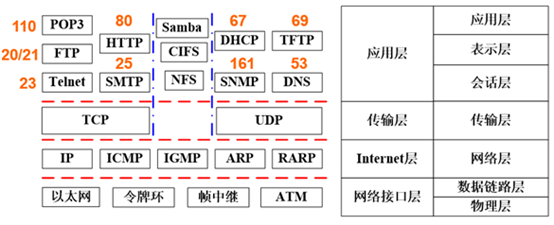 解析:如下图:NFS、Telnet、FTP和SMTP属于应用层。IP和ICMP属于网络层协议,TCP和UDP属于传输层协议,正确答案为B选项。