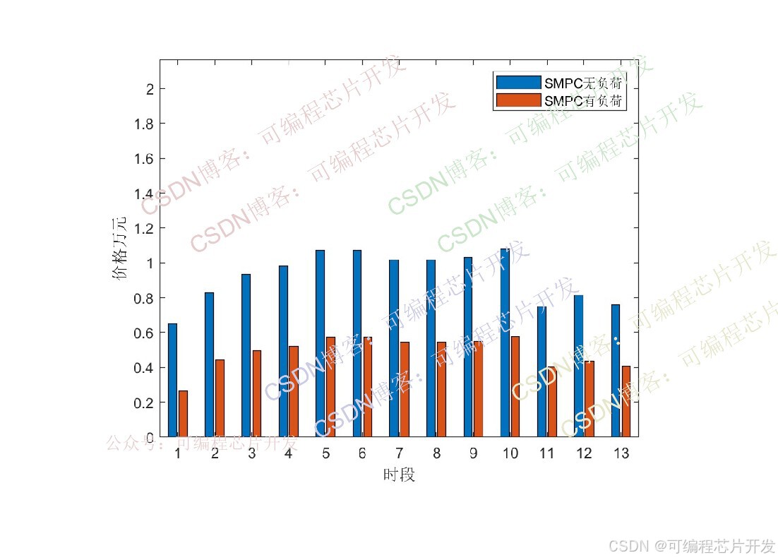 该系统基于SMPC实现了含风电场的IEEE6节点电网优化调度,核心步骤包括状态空间建模、LQR反馈设计、预测约束处理与二次规划优化。对比结果表明,允许负荷响应能有效降低系统运行成本,尤其在高负荷或高电价阶段,负荷与发电的协同优化可显著提升经济性。