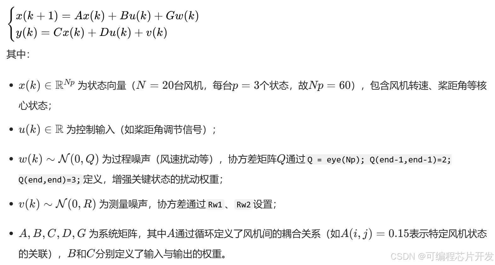 程序中,风电场被建模为离散时间随机状态空间系统: