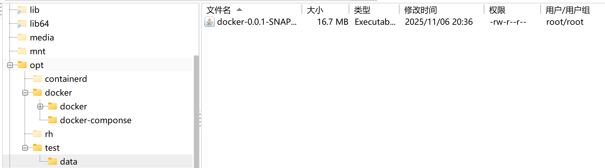 test目录下创建一个data目录用来进行挂载操作,把jar包移动到里面: