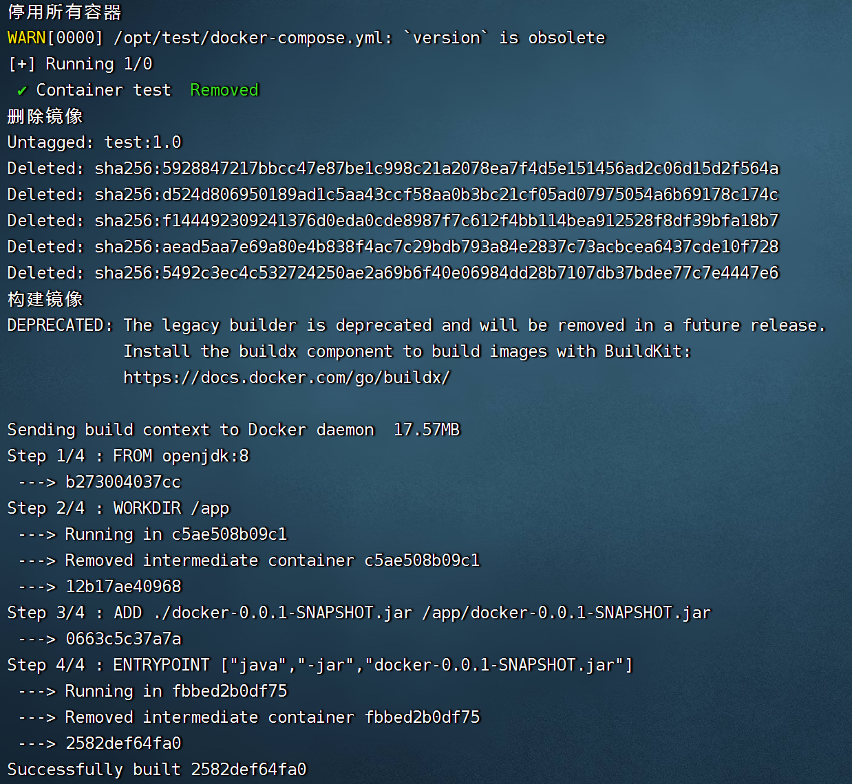 docker build -t test:1.0 .
