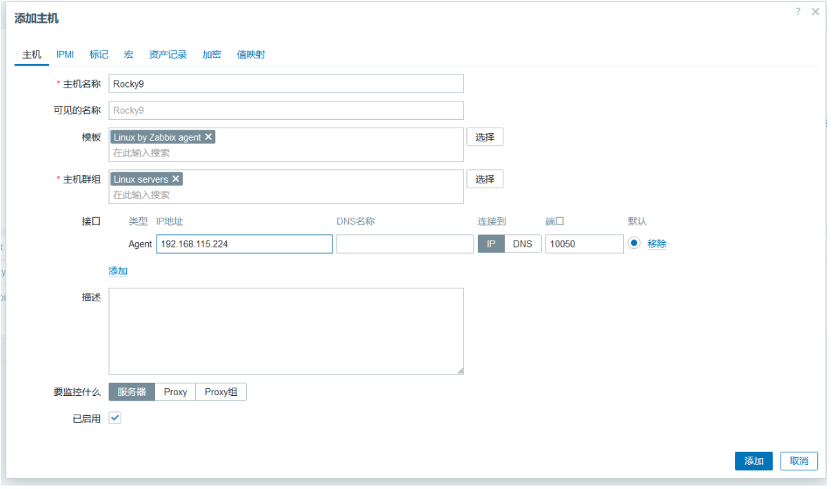 Zabbix7添加监控主机