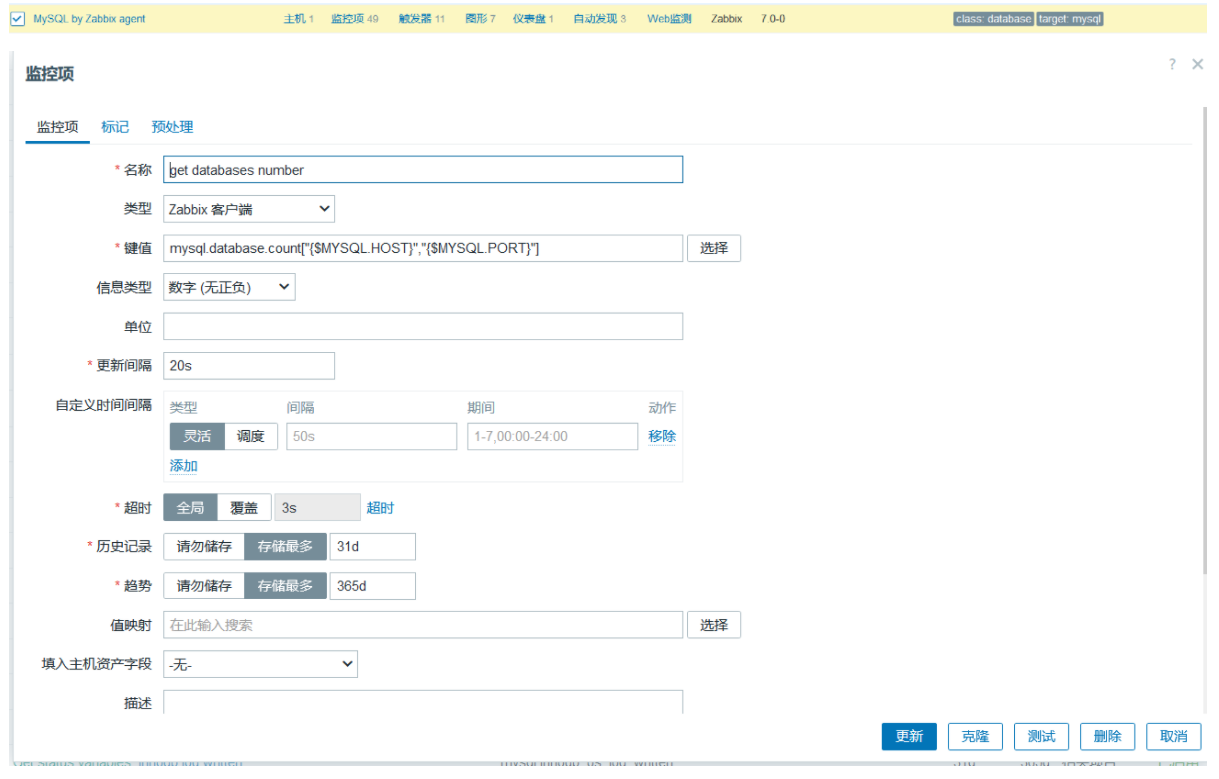 在监控mysql端添加自定义项目