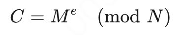 A将消息M(先通过某种方式转换成一个小于N的整数)进行加密,得到密文C: