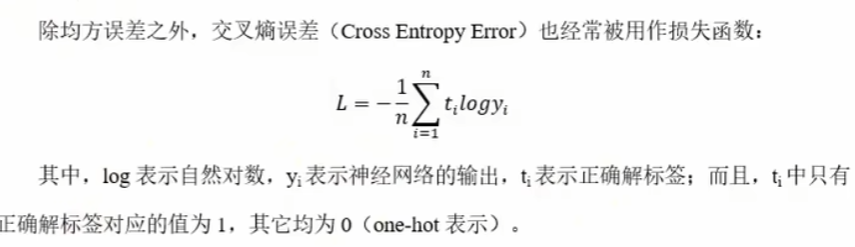 def cross_entropy(y,t):# 将y转化为二维if y.ndim==1:y=y.reshape(1,y.size)t=t.reshape(1,t.size)# 将t转化为顺序编码类别标签if t.size==y.size:# 按行取出 t中对应的类别标签t=t.argmax(axis=1)# y的所有索引值nn=y.shape[0]return -np.sum(np.log(y[np.arange(n),t]+1e-10))/n