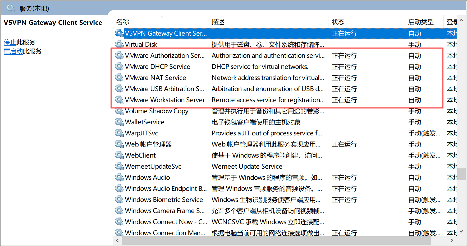 3、注意 :需要打开本地的VM服务 并且关闭本地防火墙