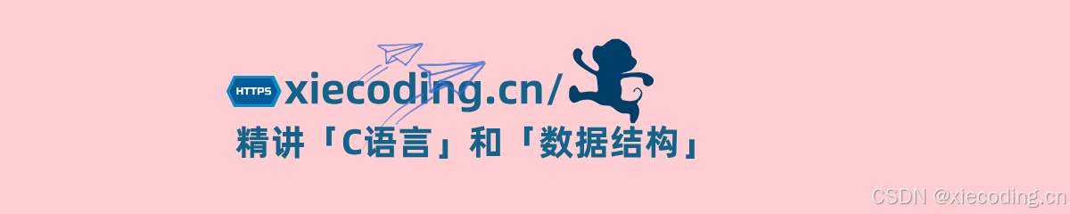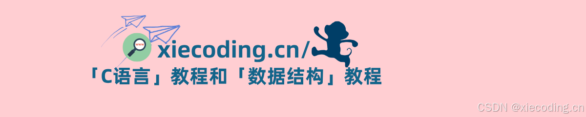 }int main() {printf("快速入门C语言和数据结构:https://xiecoding.cn/");BiTree Tree;CreateBiTree(&Tree);printf("先序遍历: \n");PreOrderTraverse(Tree);return 0;