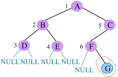 11) 访问根 G,先序遍历 G 的左子树,G 的左子树为空,返回 G。先序遍历 G 的右子树,G 的右子树为空,返回 C: