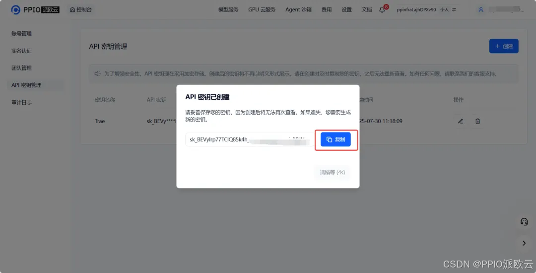 2. 生成并保存 API 密钥