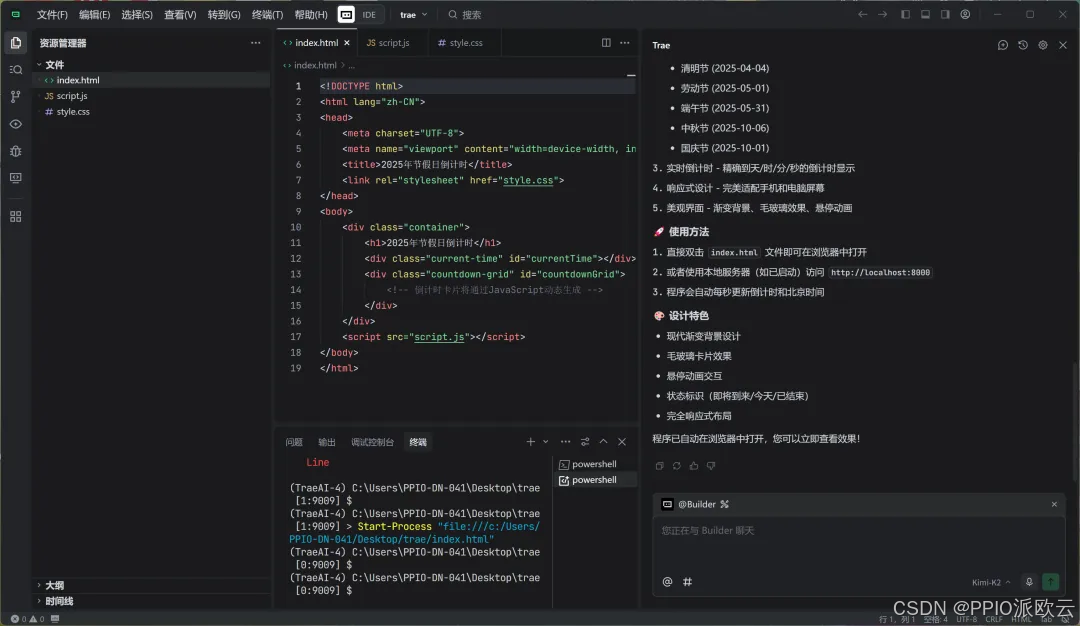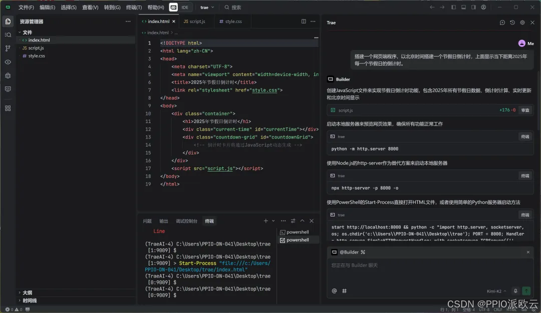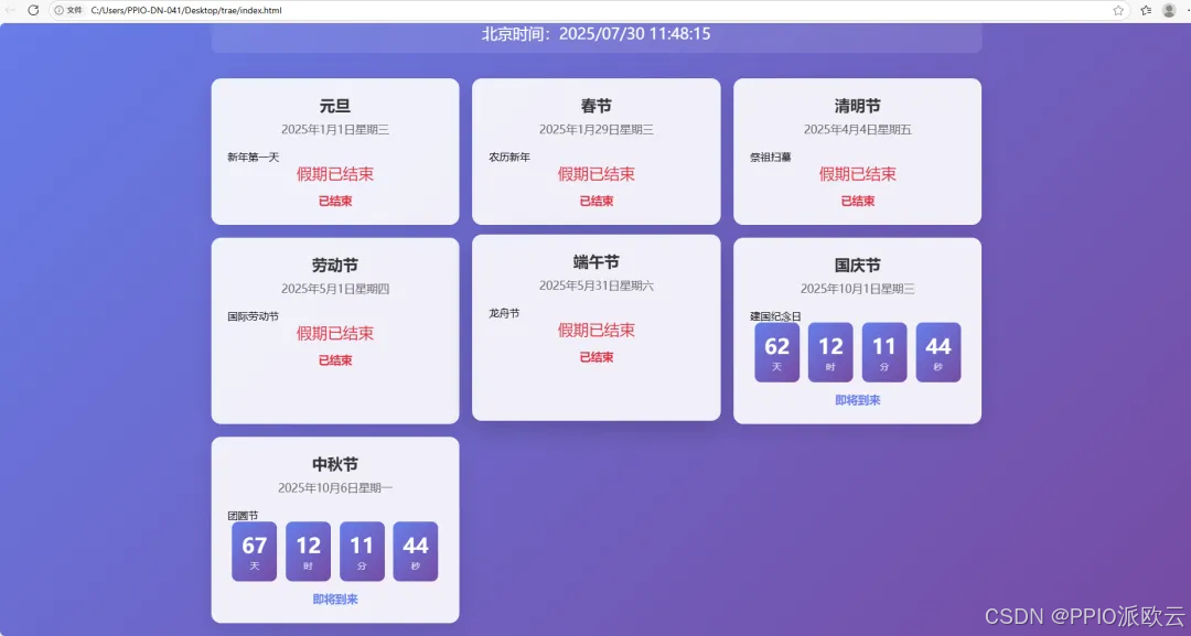如:以北京时间搭建一个节假日倒计时网页,上面显示当下距离 2025 年每一个节假日的倒计时。