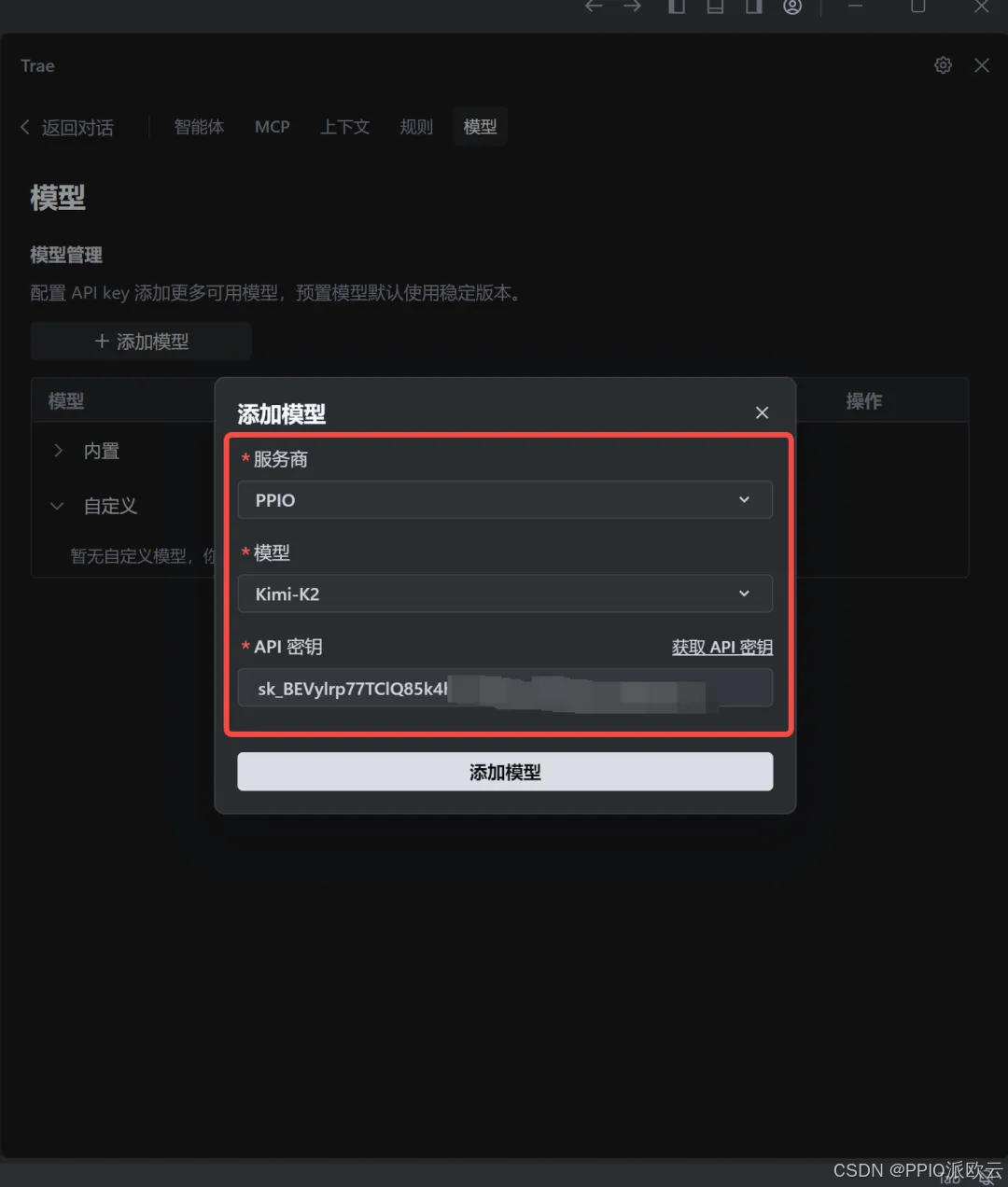 以下为 PPIO 接入 Trae 的完整教程,三个步骤即可获取 AI 编程神器!