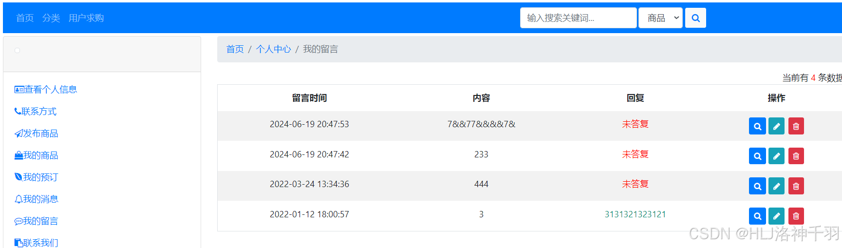 8. 给管理员留言以及管理自己的留言(查询、修改、删除)