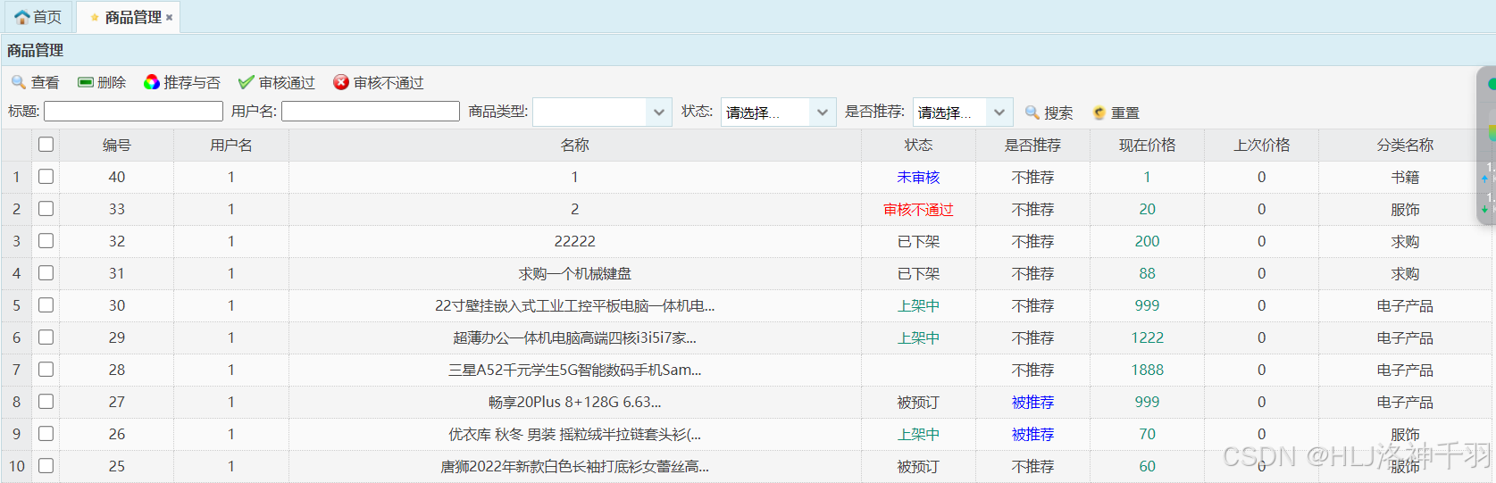 3. 商品管理(查询、删除、审核商品、推荐商品)