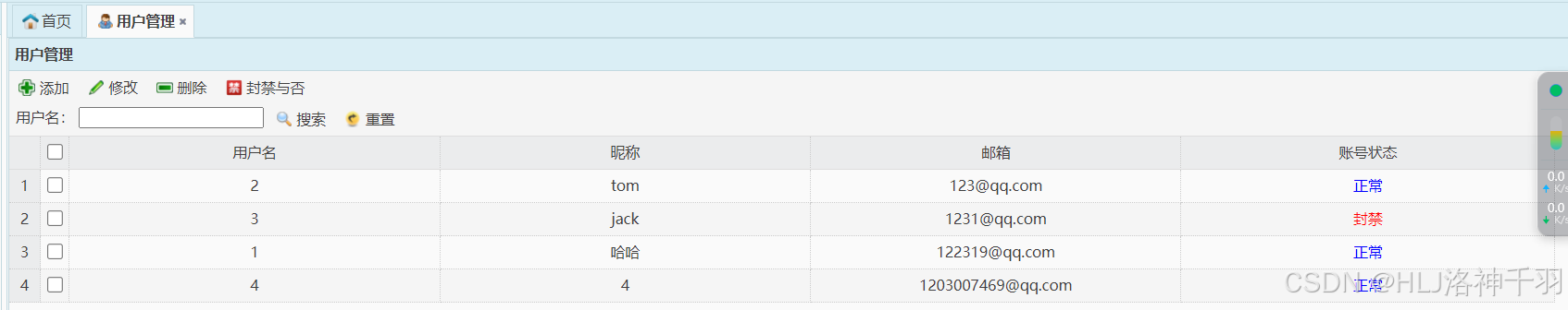 1. 管理普通用户(添加、修改、删除、查询、封禁与取消封禁)