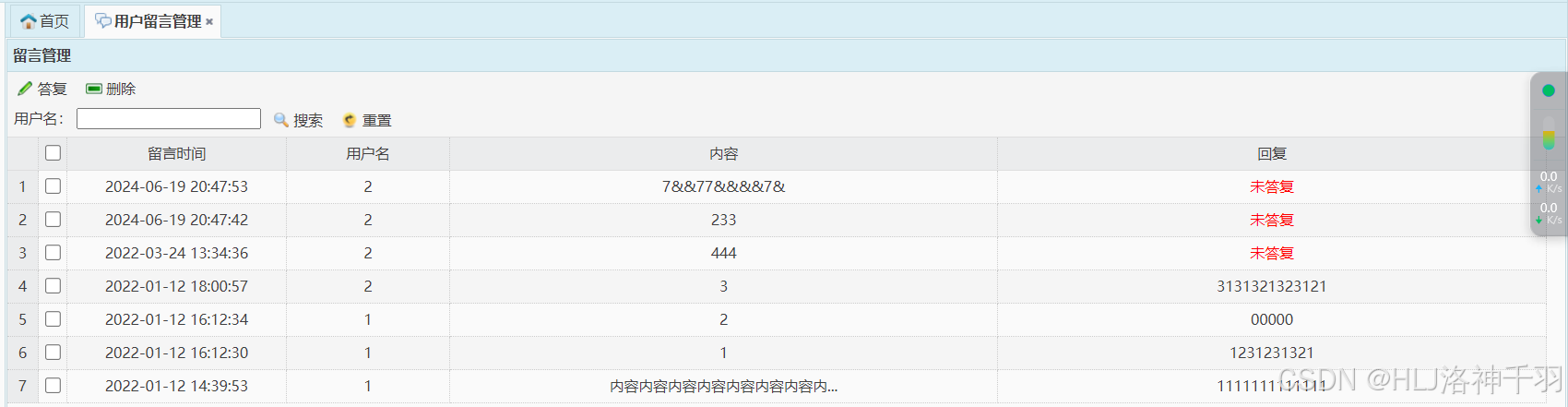 5. 管理用户留言(答复用户的留言、删除、查询)