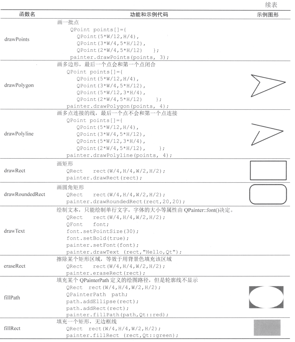 在设备上绘图,只需重定义此事件并编写响应代码。创建一个QPainter对象获取绘图设备的接口,然后就可以在绘图设备的“画布”上绘图了。